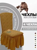 Набор чехлов на стулья с оборкой (4 шт)Жаккард ,темно-бежевый