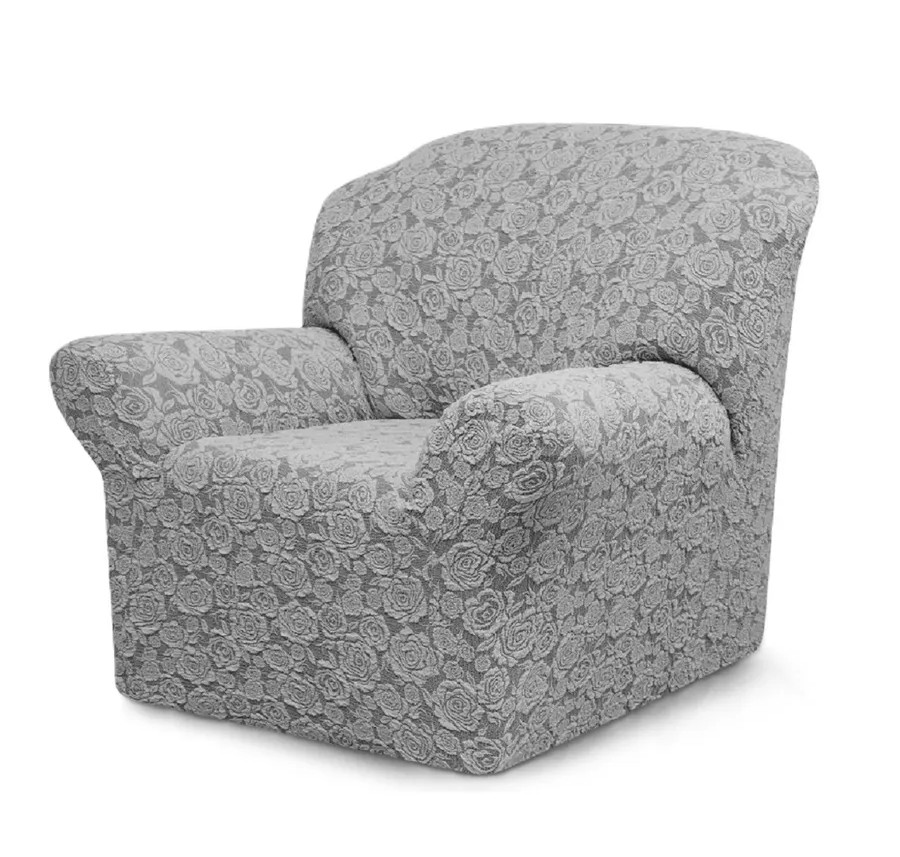 Чехол на кресло без оборки 1 шт. Жаккард , серебро