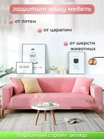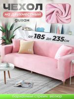 Чехол на 2-х местный диван без оборки Бархат, розовый