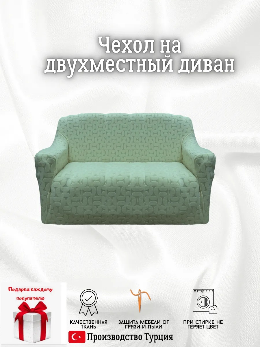 Чехол на 2-х местный диван без оборки Бархатный Жаккард ,нежная мята