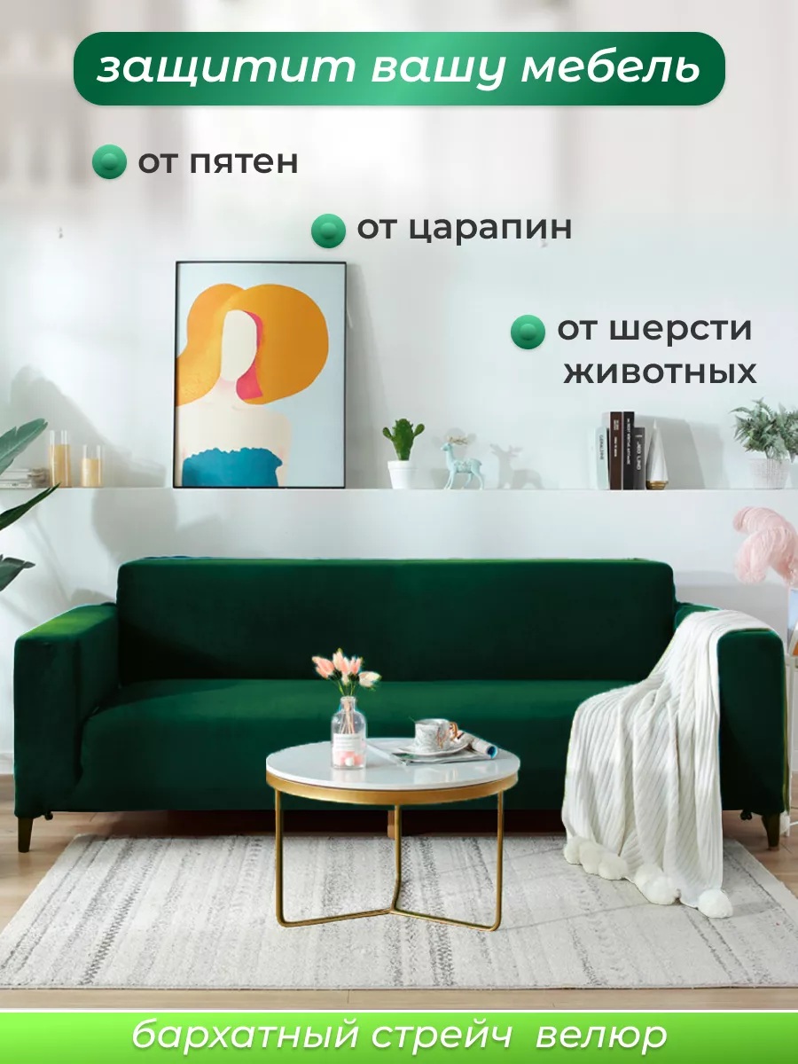 Чехол на 2-х местный диван без оборки Бархат, зеленый