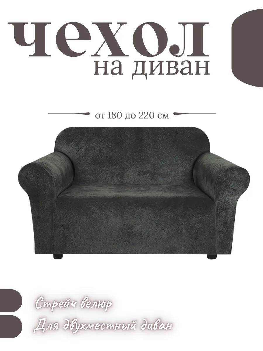 Чехол на 2-х местный диван без оборки Бархатный Велюр ,темно-серый