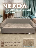 Чехол на 2-х местный диван без оборки Королевский Велюр ,пепельно-коричневый