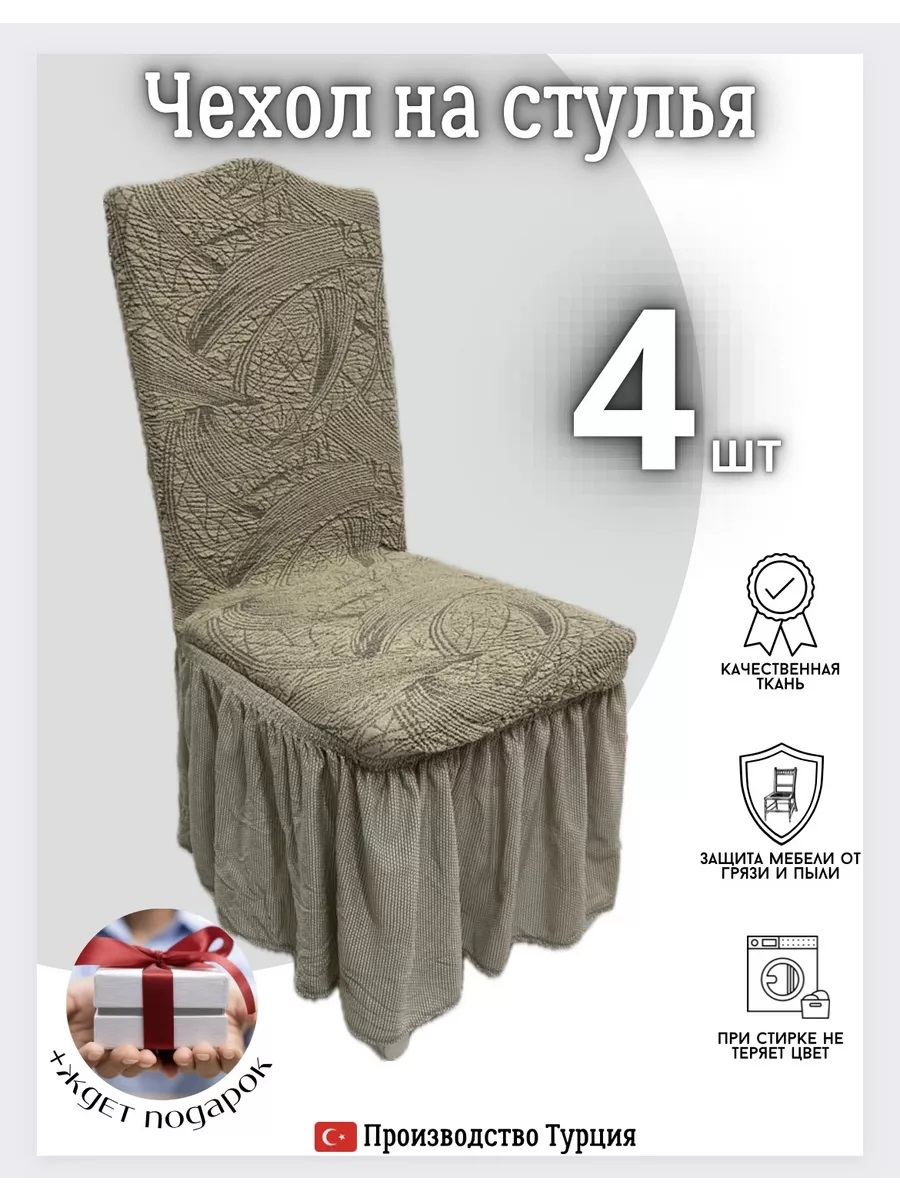 Набор чехлов на стулья с оборкой (4 шт) Жаккард, медово-бежевый