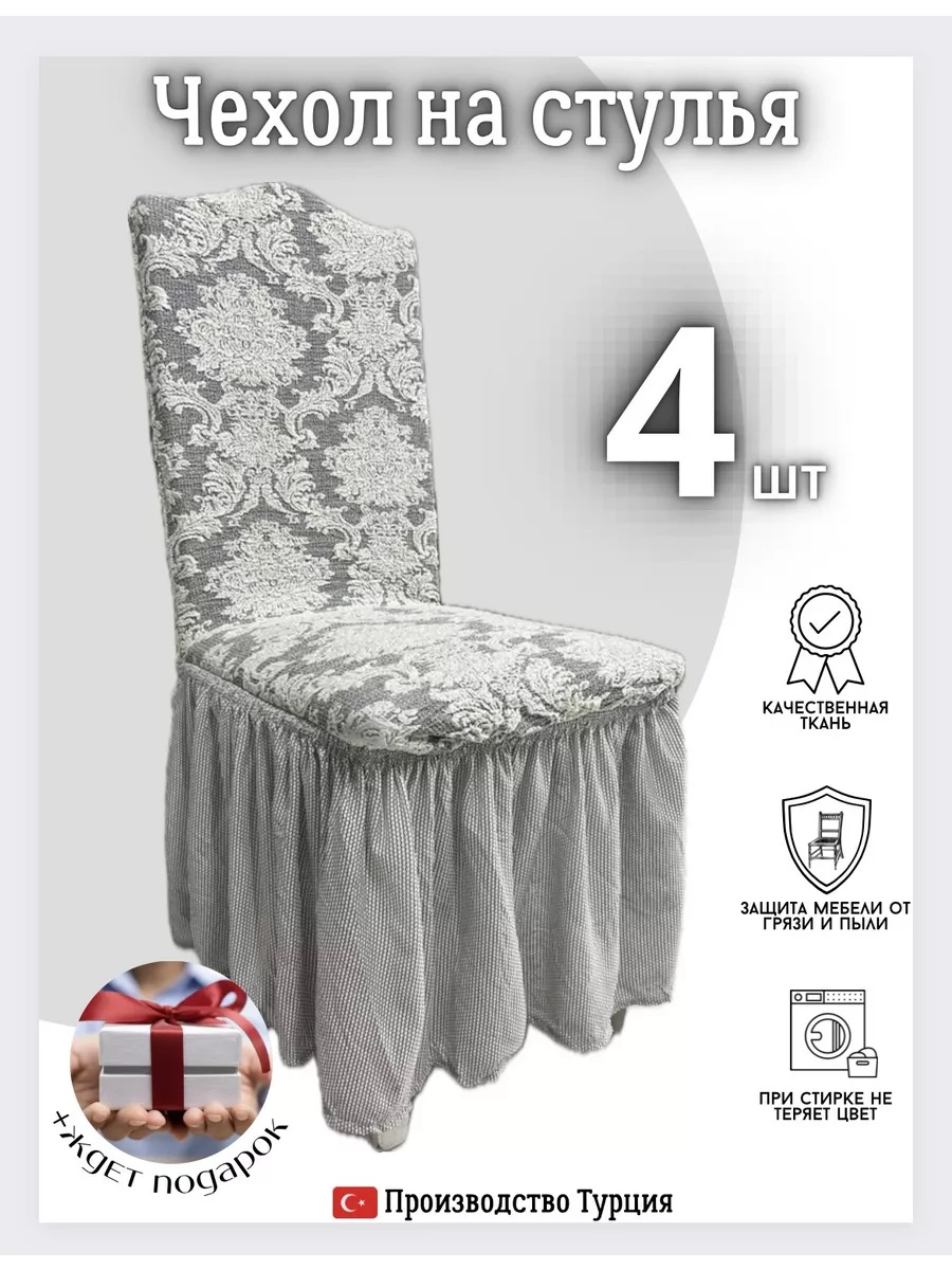 Набор чехлов на стулья с оборкой (4 шт) Жаккард,бело-серый
