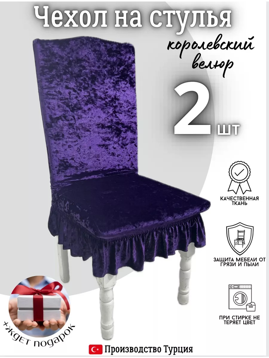 Набор чехлов на стулья с оборкой (2 шт) Бархатный велюр, темно-фиолетовый