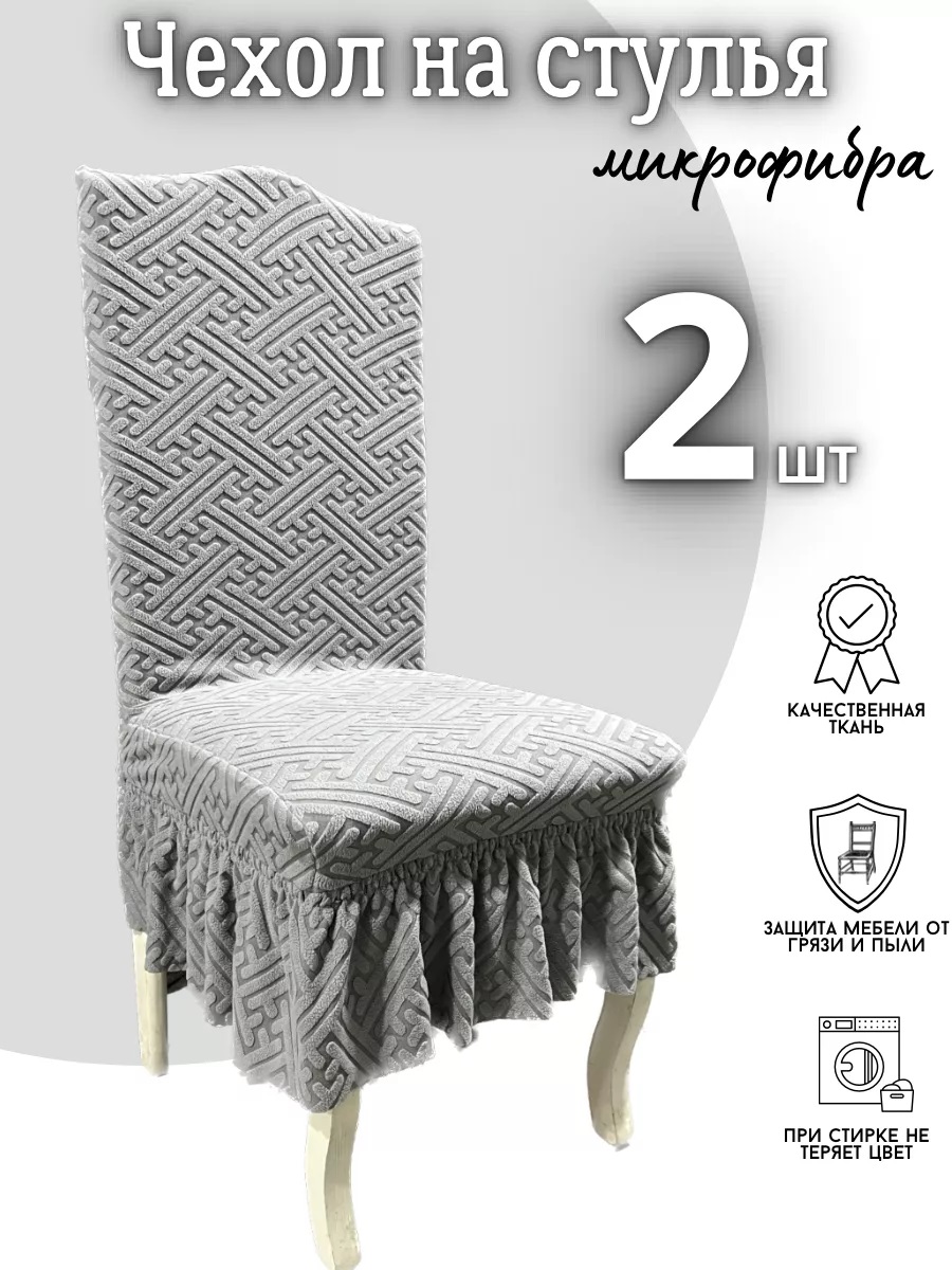 Набор чехлов на стулья с оборкой (2 шт) Жаккард,серый