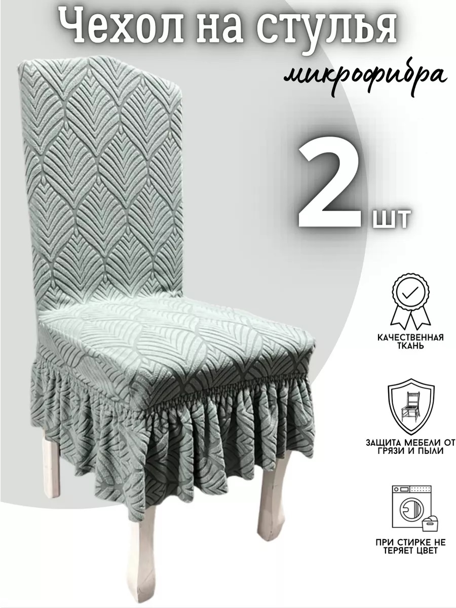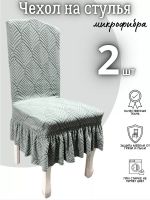 Набор чехлов на стулья с оборкой (2 шт) Жаккард,зеленовато-серый