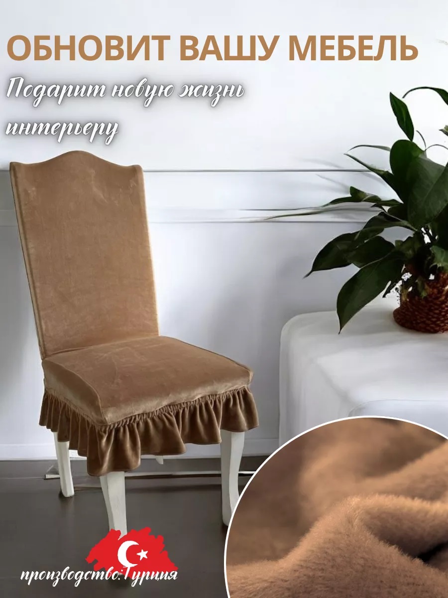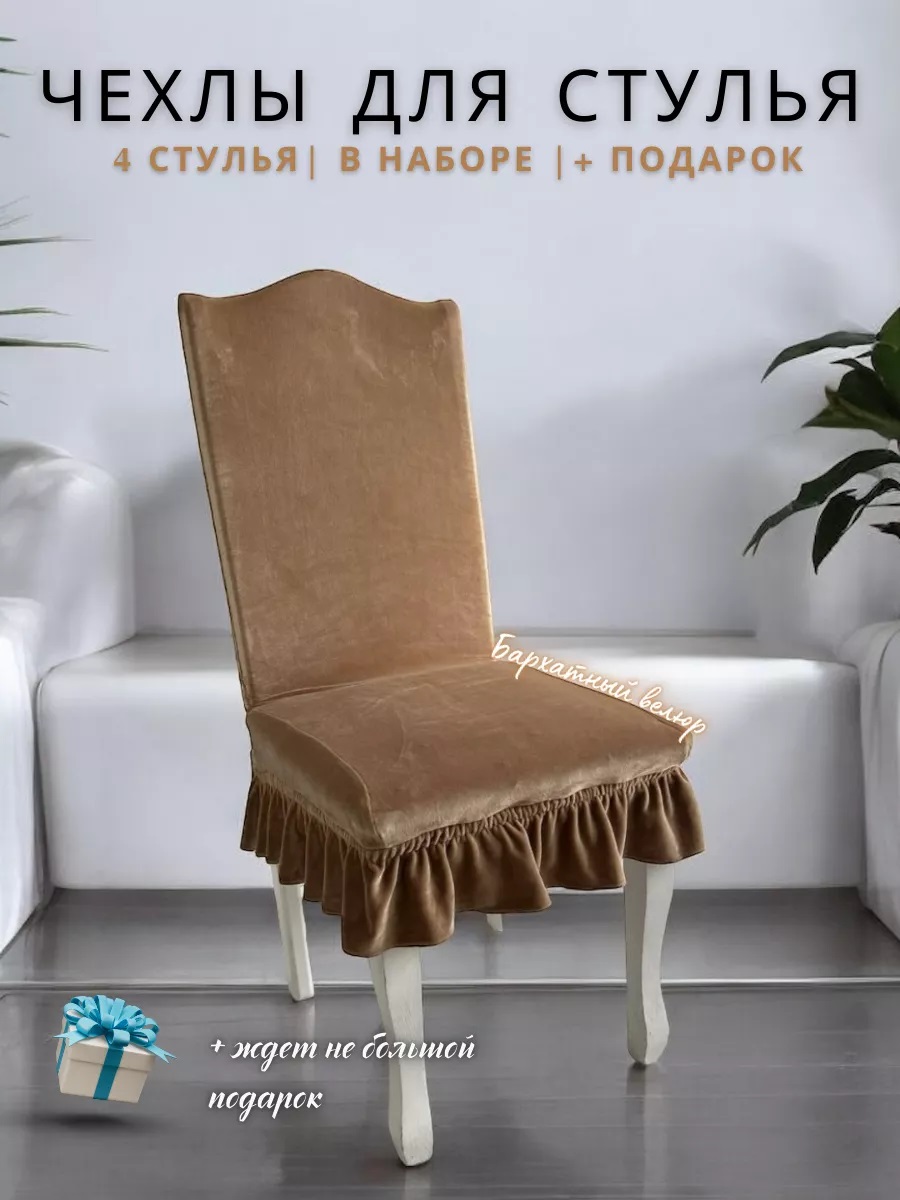 Набор чехлов на стулья с оборкой (4 шт) Бархатный велюр,медно-коричневый