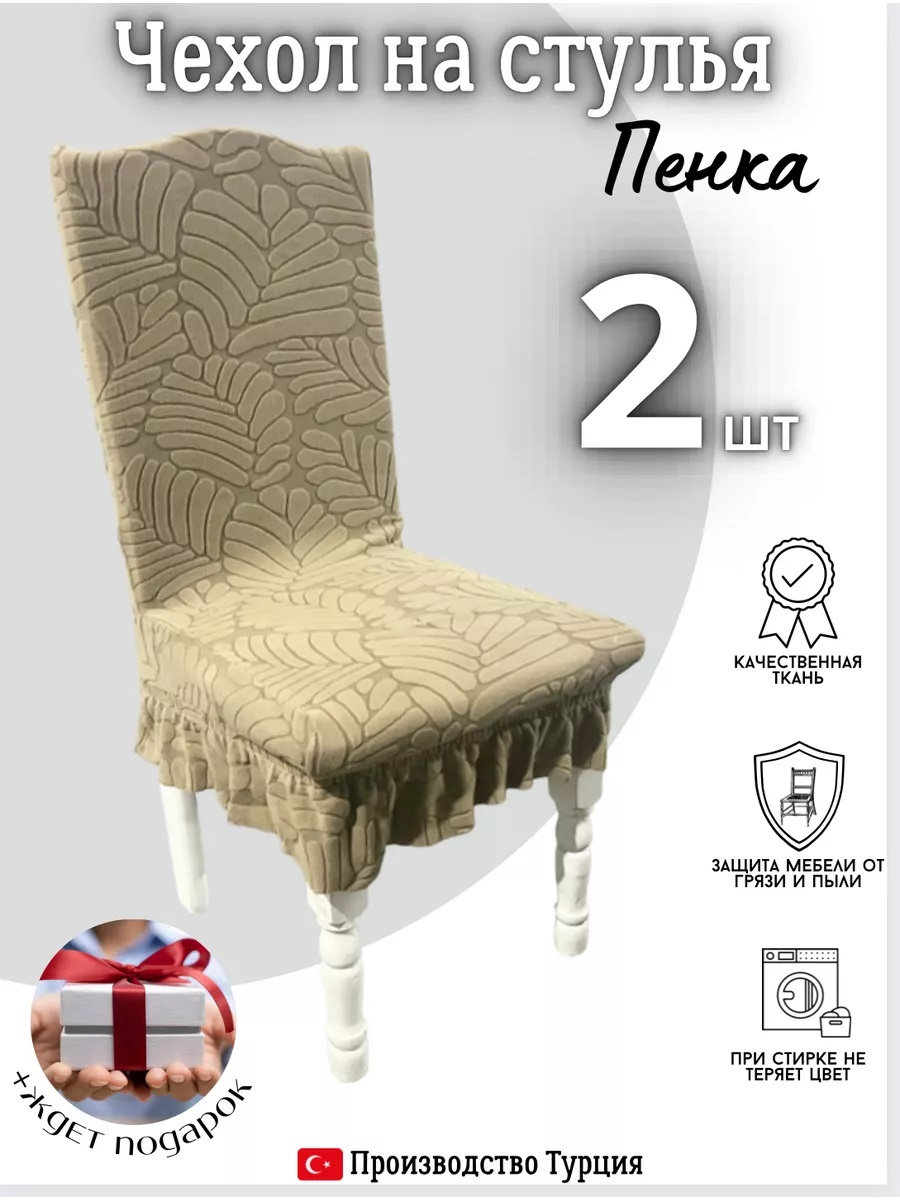 Набор чехлов на стулья с оборкой (2 шт) Жаккард,желто-коричневый