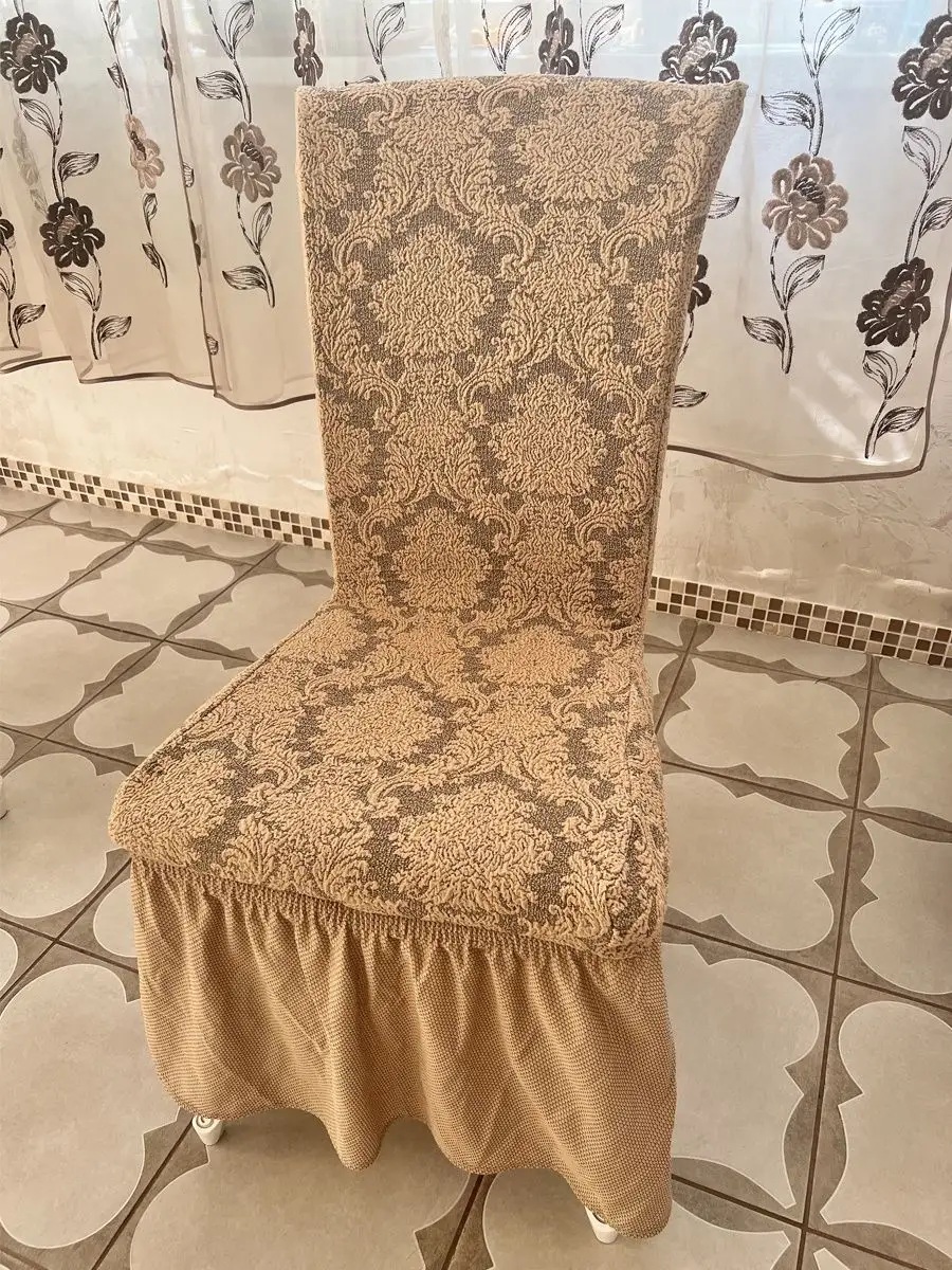 Набор чехлов на стулья с оборкой (4 шт) Жаккард,медовый