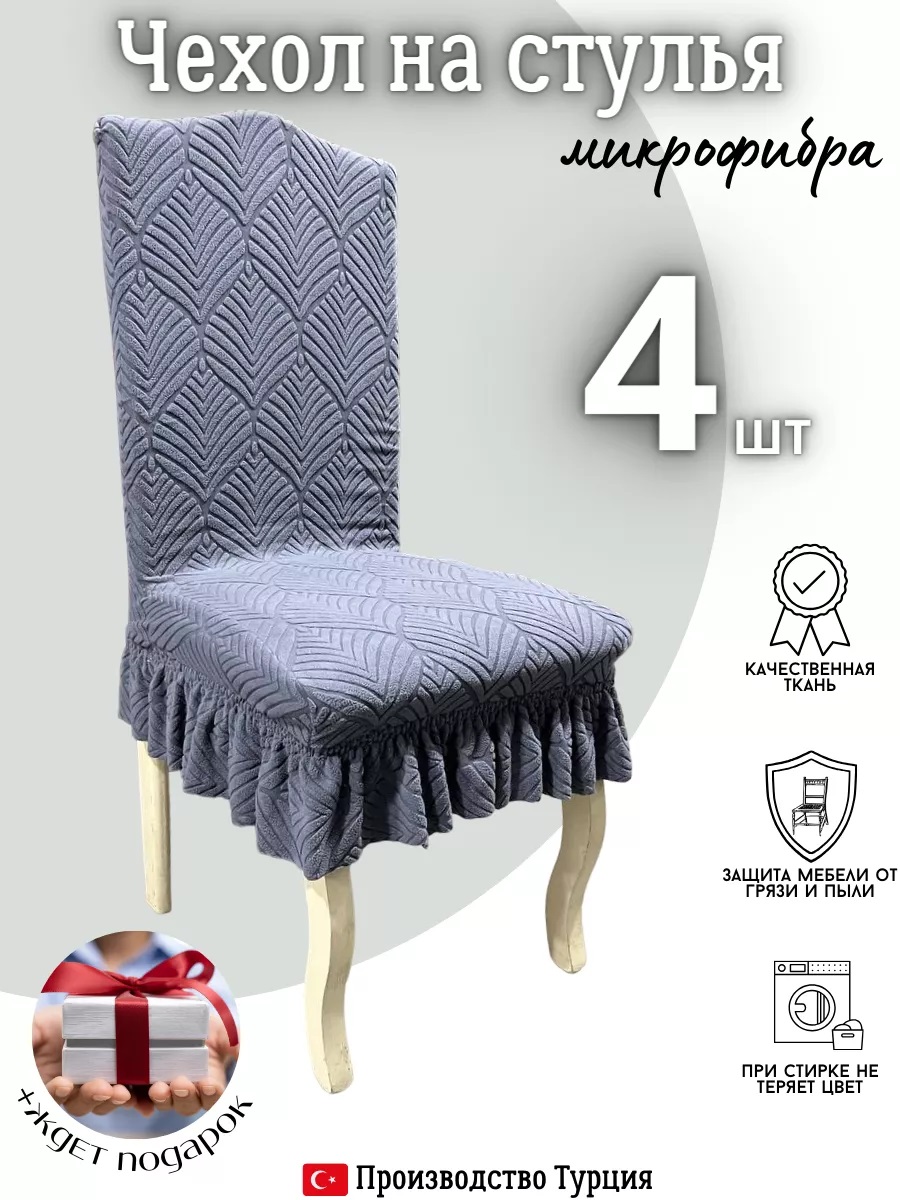 Набор чехлов на стулья с оборкой (4 шт) Жаккард, темно-серый