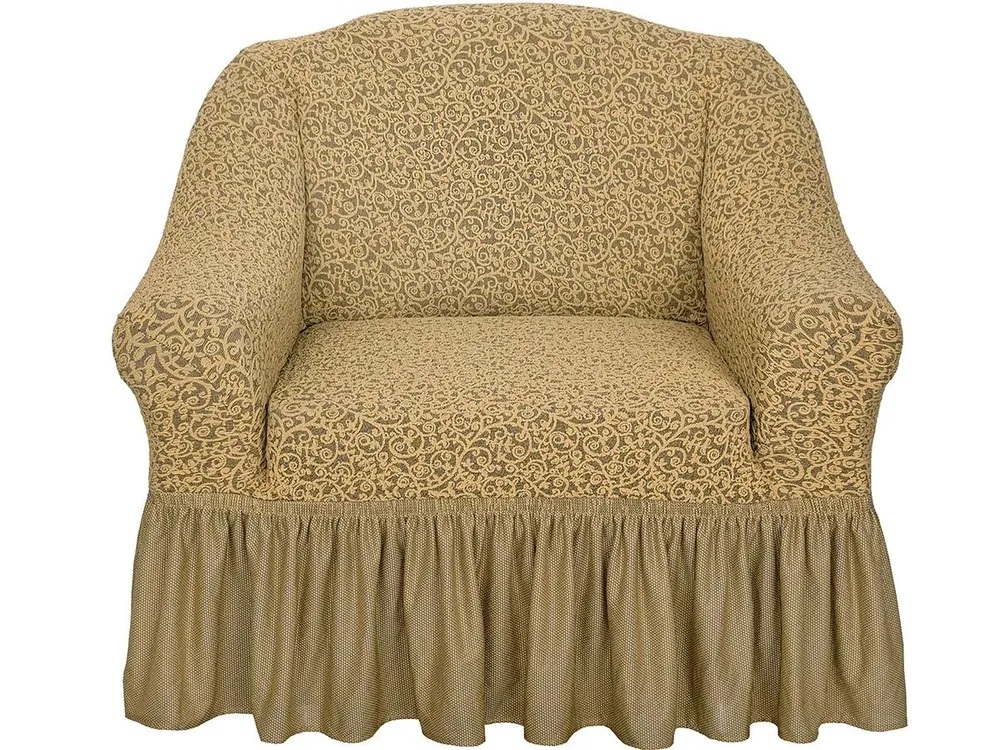 Чехол на кресло с оборкой 1 шт Жаккард.,песочный