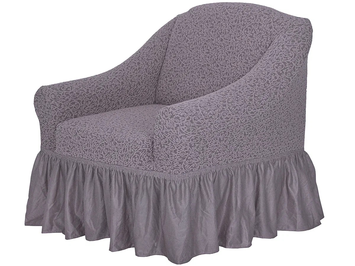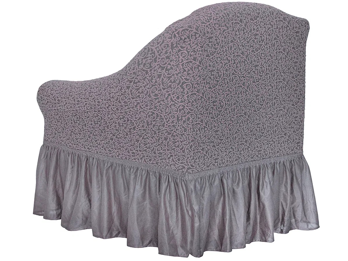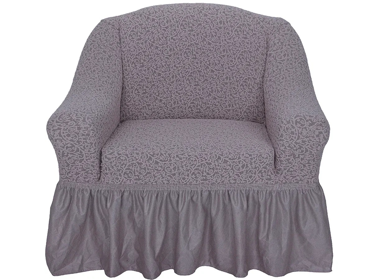 Чехол на кресло с оборкой 1 шт Жаккард.,серо-бежевый