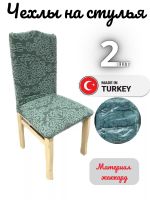 Чехлы для стульев (2 шт), без оборки, жаккард, зеленый