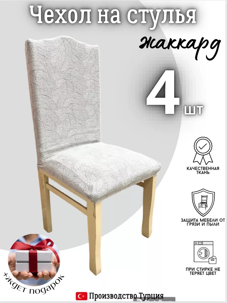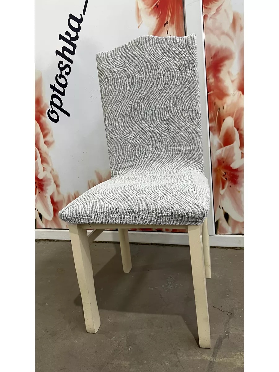 Чехлы для стульев (4 шт), без оборки, жаккард, бело-серый