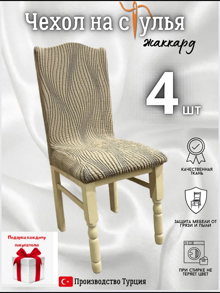 Чехлы для стульев (4 шт), без оборки, жаккард, бледно-желтый