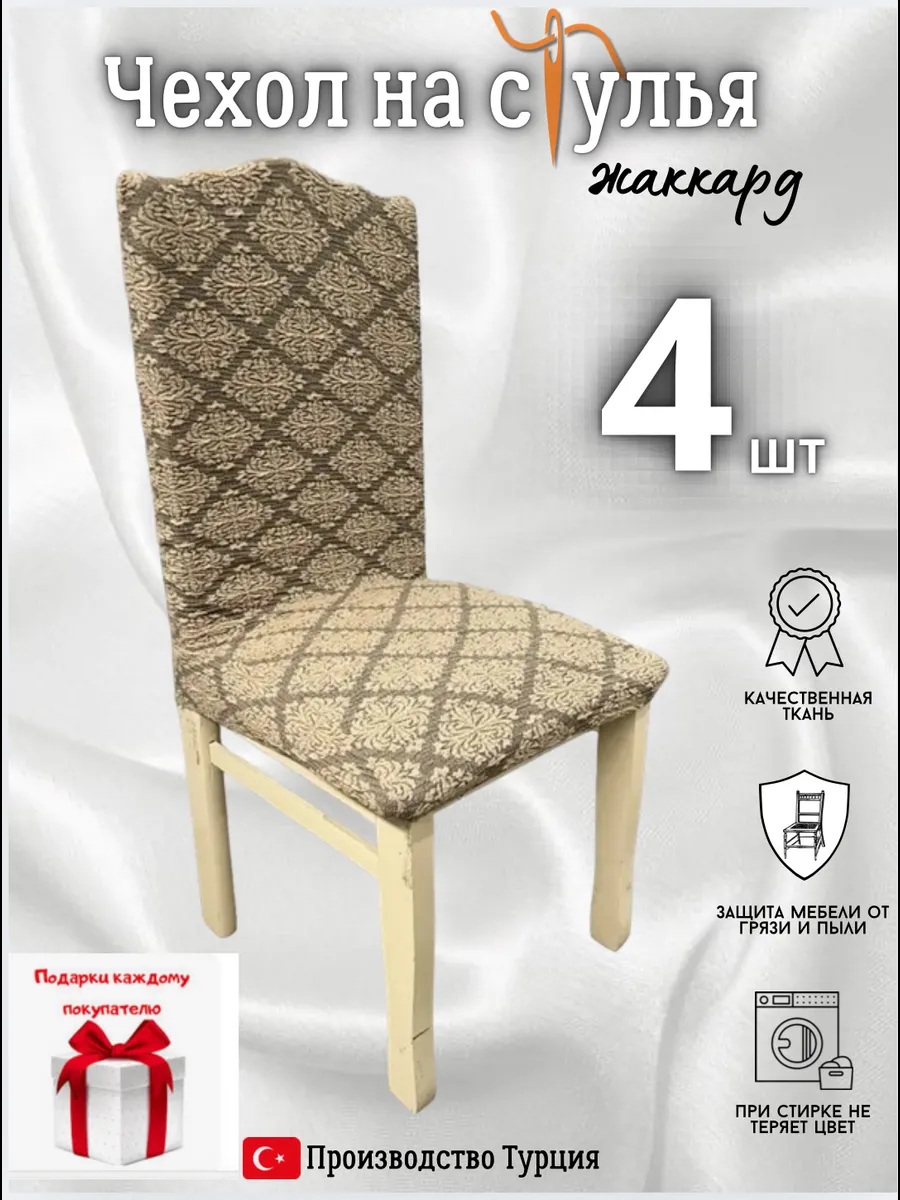 Чехлы для стульев (4 шт), без оборки, жаккард, коричневый