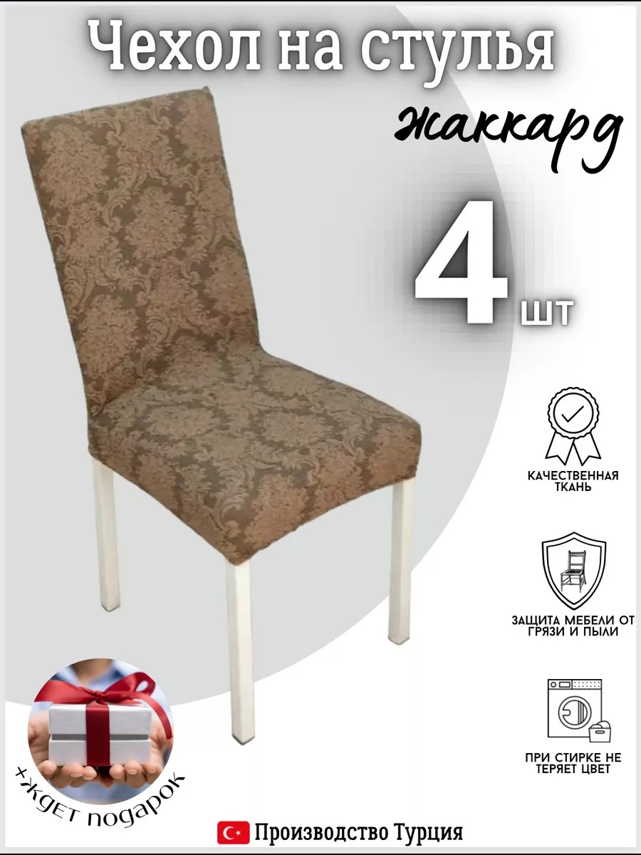 Чехлы для стульев (4 шт), без оборки, жаккард, коричневый
