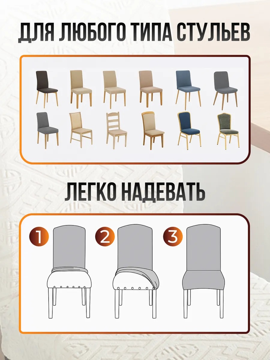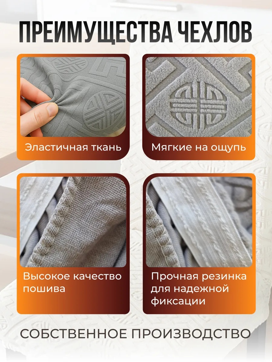 Чехлы для стульев (4 шт), без оборки, жаккард, молочный