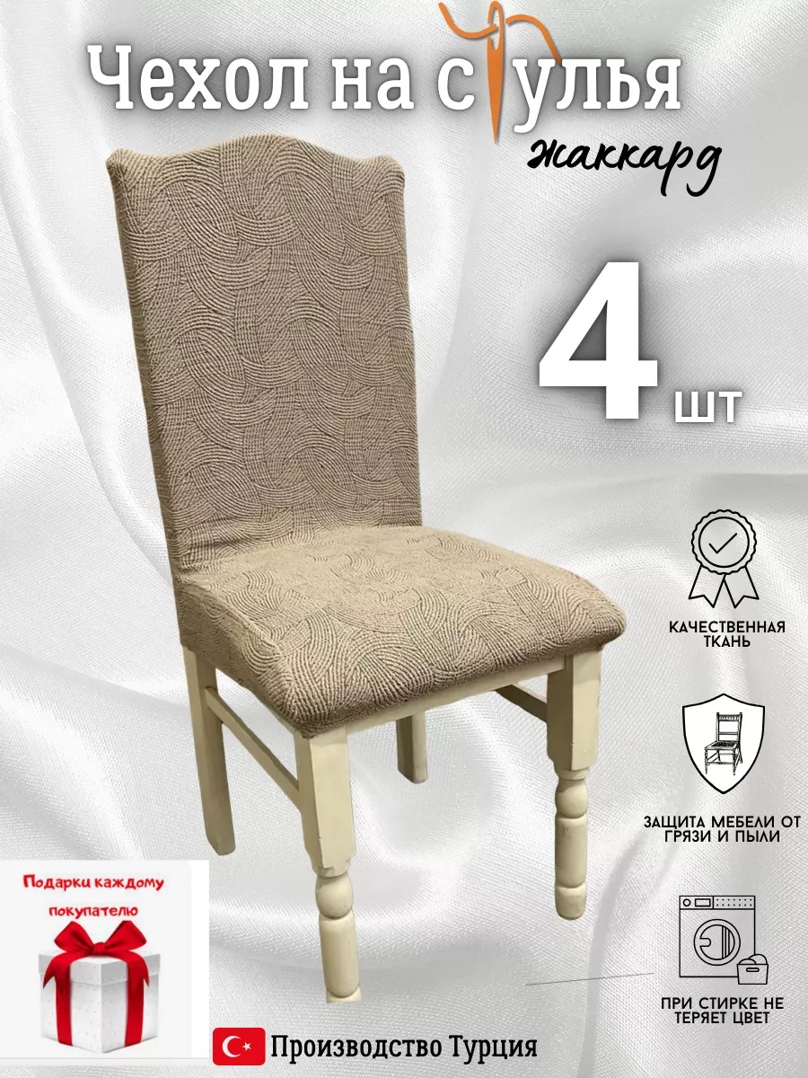 Чехлы для стульев (4 шт), без оборки, жаккард, серо-коричневый