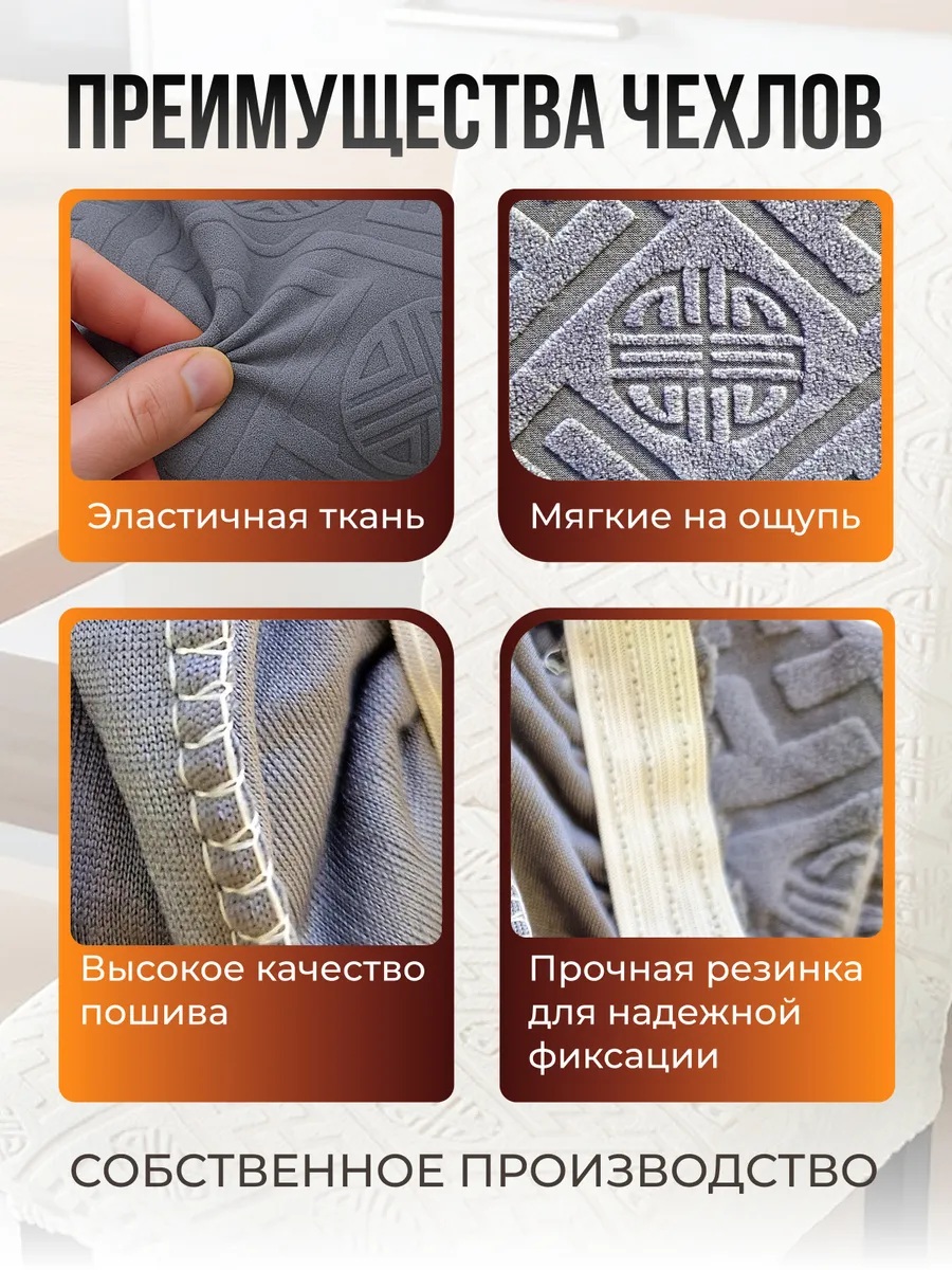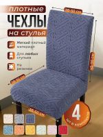 Чехлы для стульев (4 шт), без оборки, жаккард, серо-синий