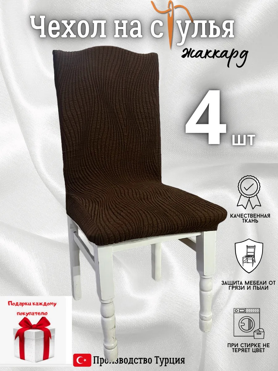 Чехлы для стульев (4 шт), без оборки, жаккард, шоколадный