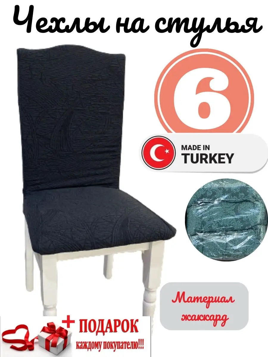Чехлы для стульев (6 шт), без оборки, жаккард, черный