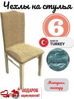 Чехлы для стульев (6 шт), без оборки, жаккард, оранжево-желтый