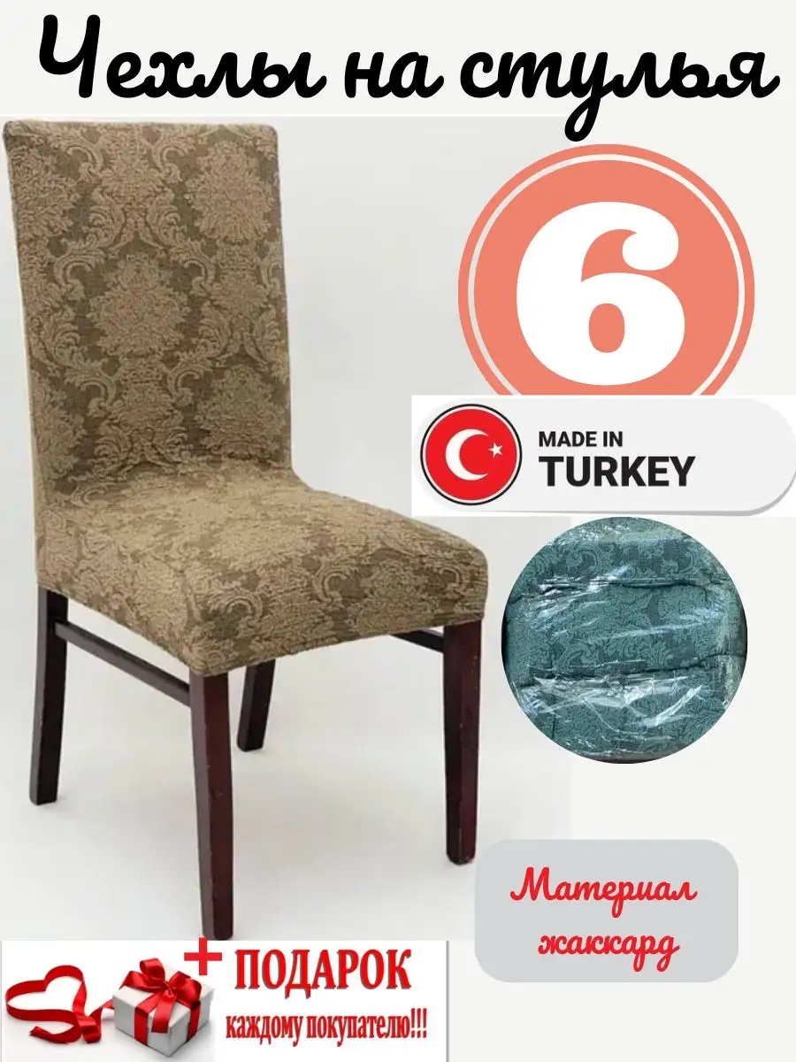 Чехлы для стульев (6 шт), без оборки, жаккард, серо-коричневый