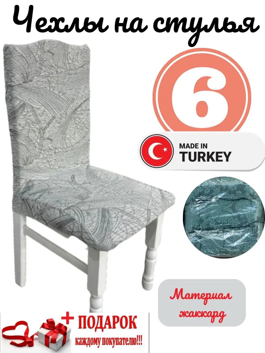 Чехлы для стульев (6 шт), без оборки, жаккард, серый