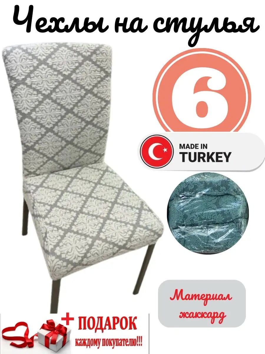 Чехлы для стульев (6 шт), без оборки, жаккард, серый