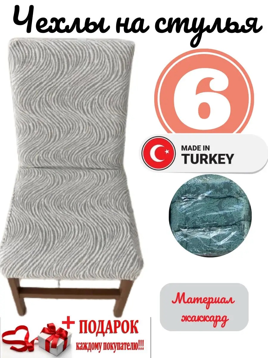 Чехлы для стульев (6 шт), без оборки, жаккард, серый
