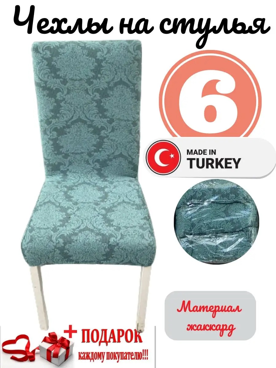 Чехлы для стульев (6 шт), без оборки, жаккард, серый