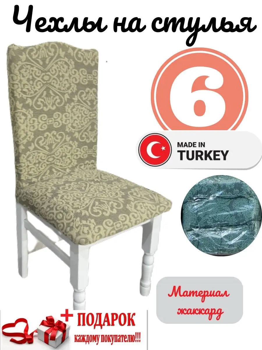 Чехлы для стульев (6 шт), без оборки, жаккард, желтый