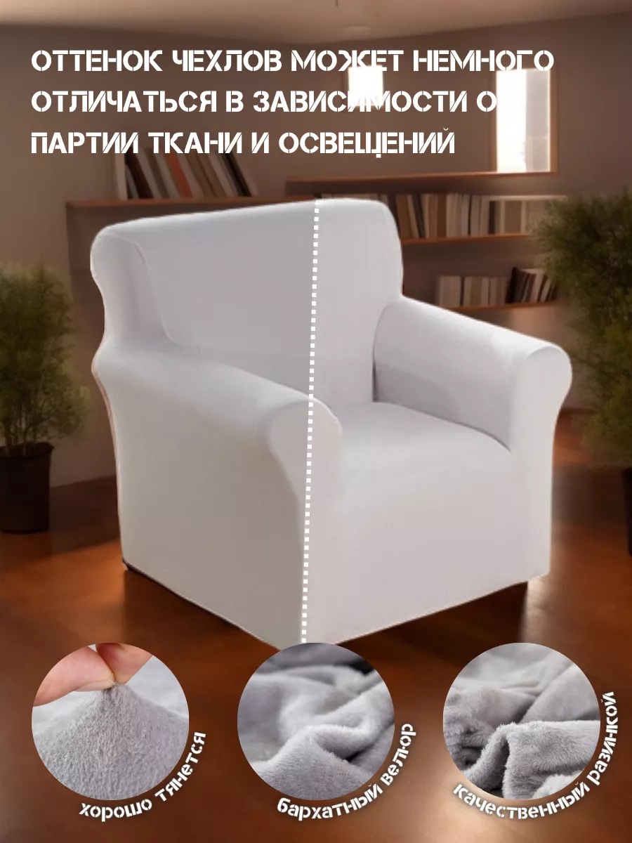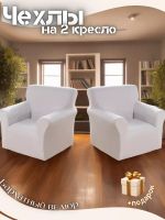 Чехлы на 2 кресла без оборки плюш (мех) белый