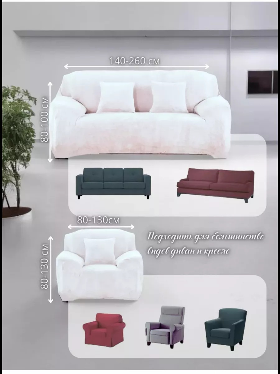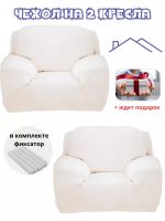 Чехлы на 2 кресла без оборки плюш (мех) белый