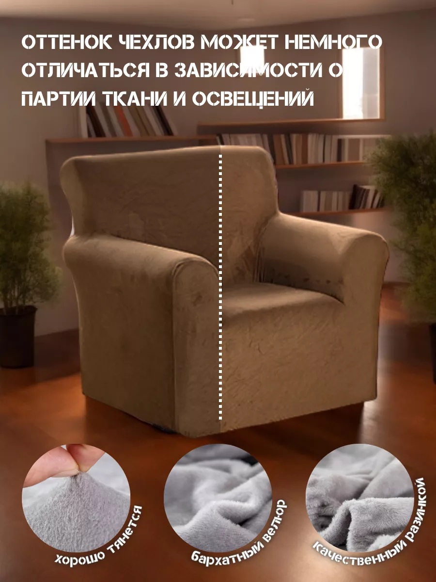 Чехлы на 2 кресла без оборки плюш (мех) медно-коричневый