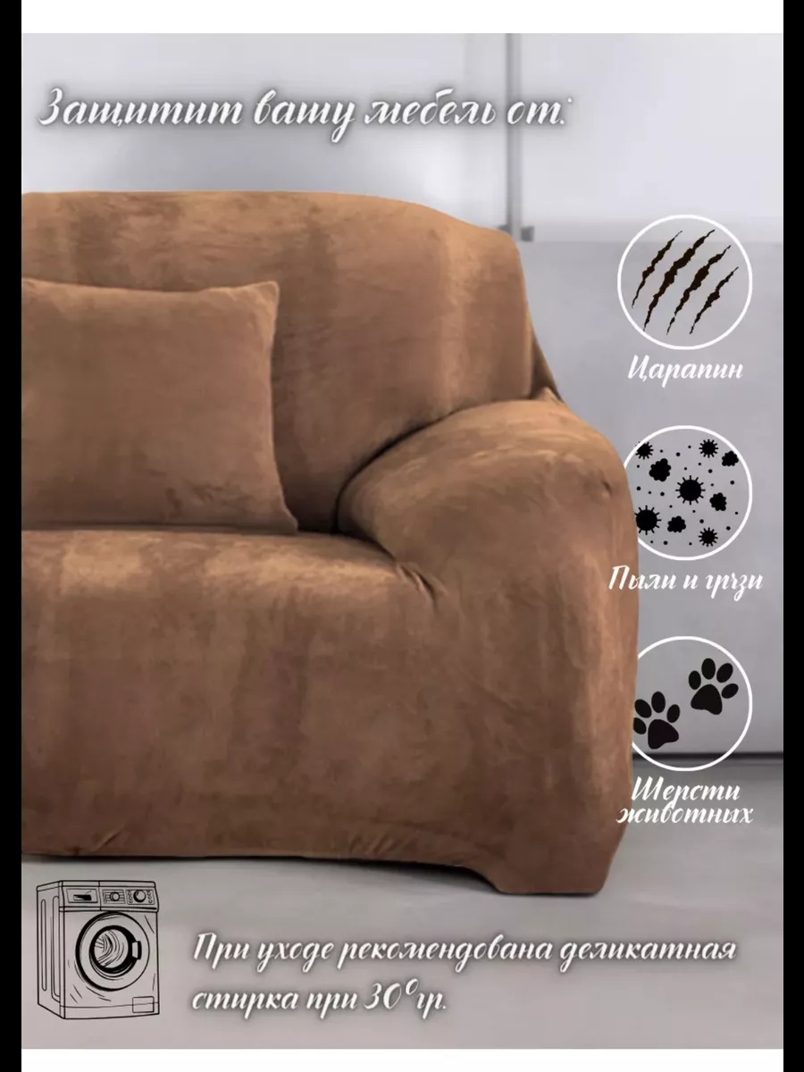 Чехлы на 2 кресла без оборки плюш (мех) медно-коричневый