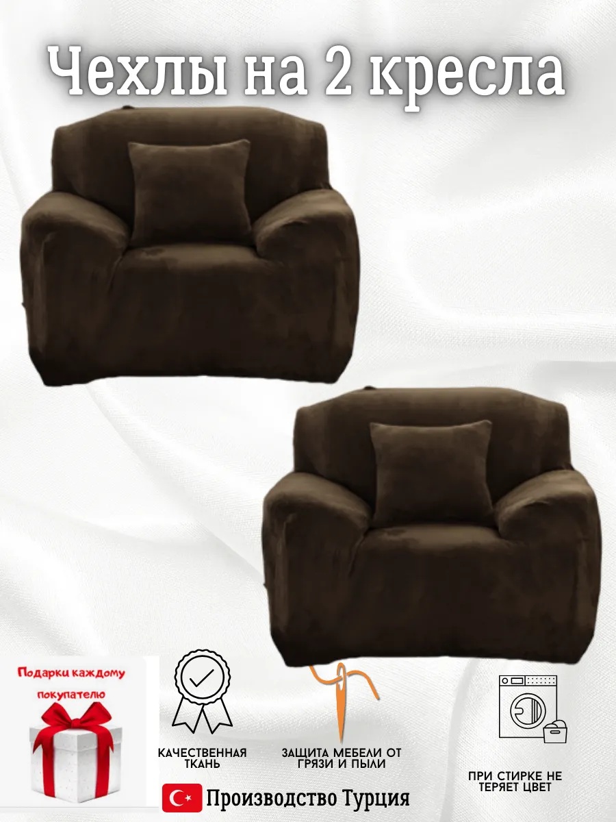 Чехлы на 2 кресла без оборки плюш (мех) шоколадный