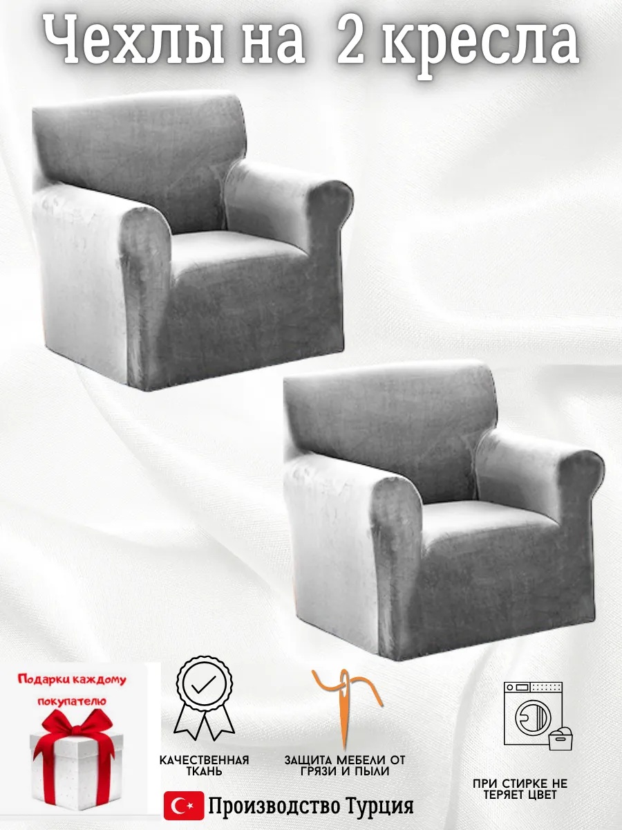 Чехлы на 2 кресла без оборки плюш (мех) светло-серый