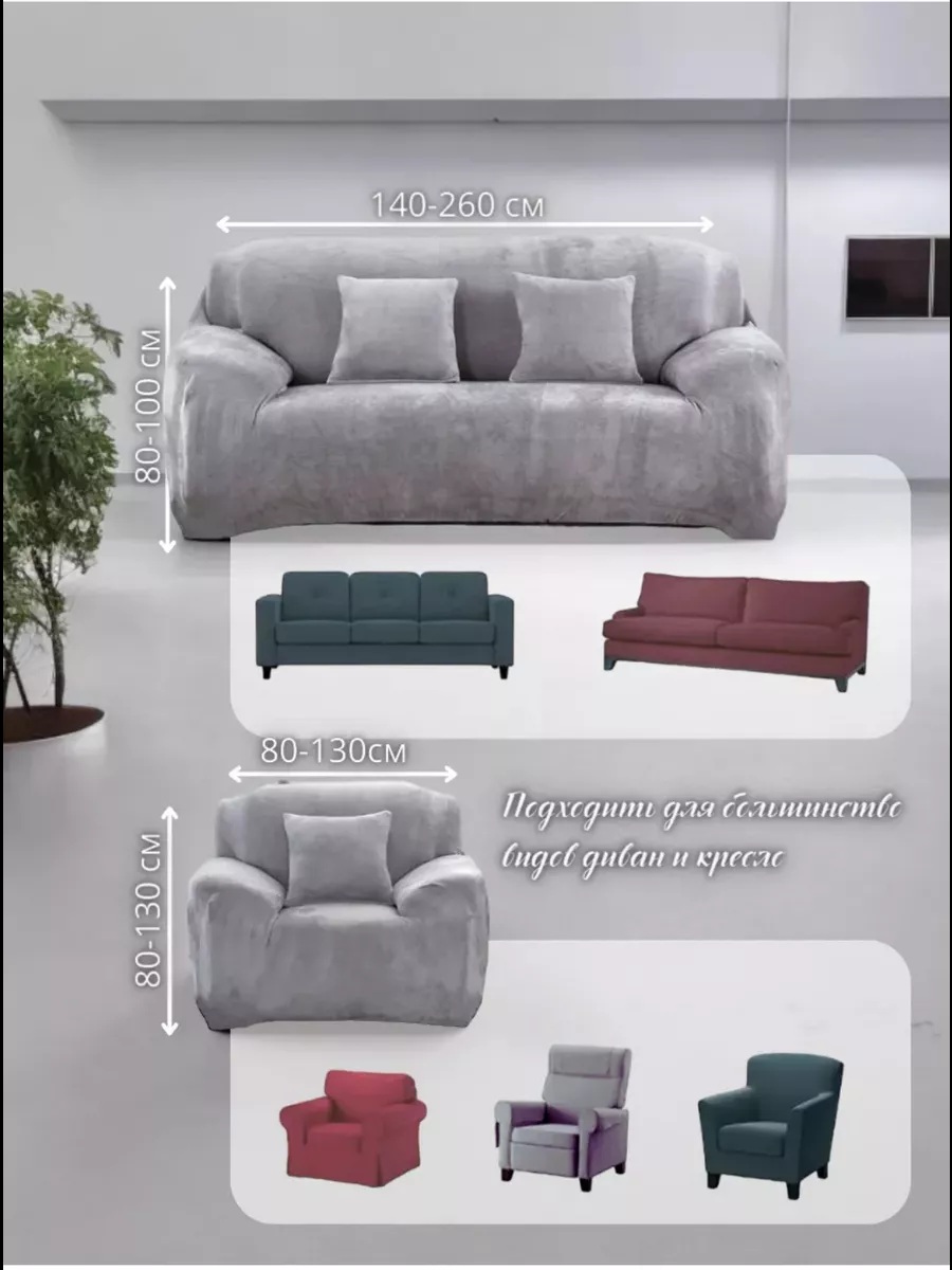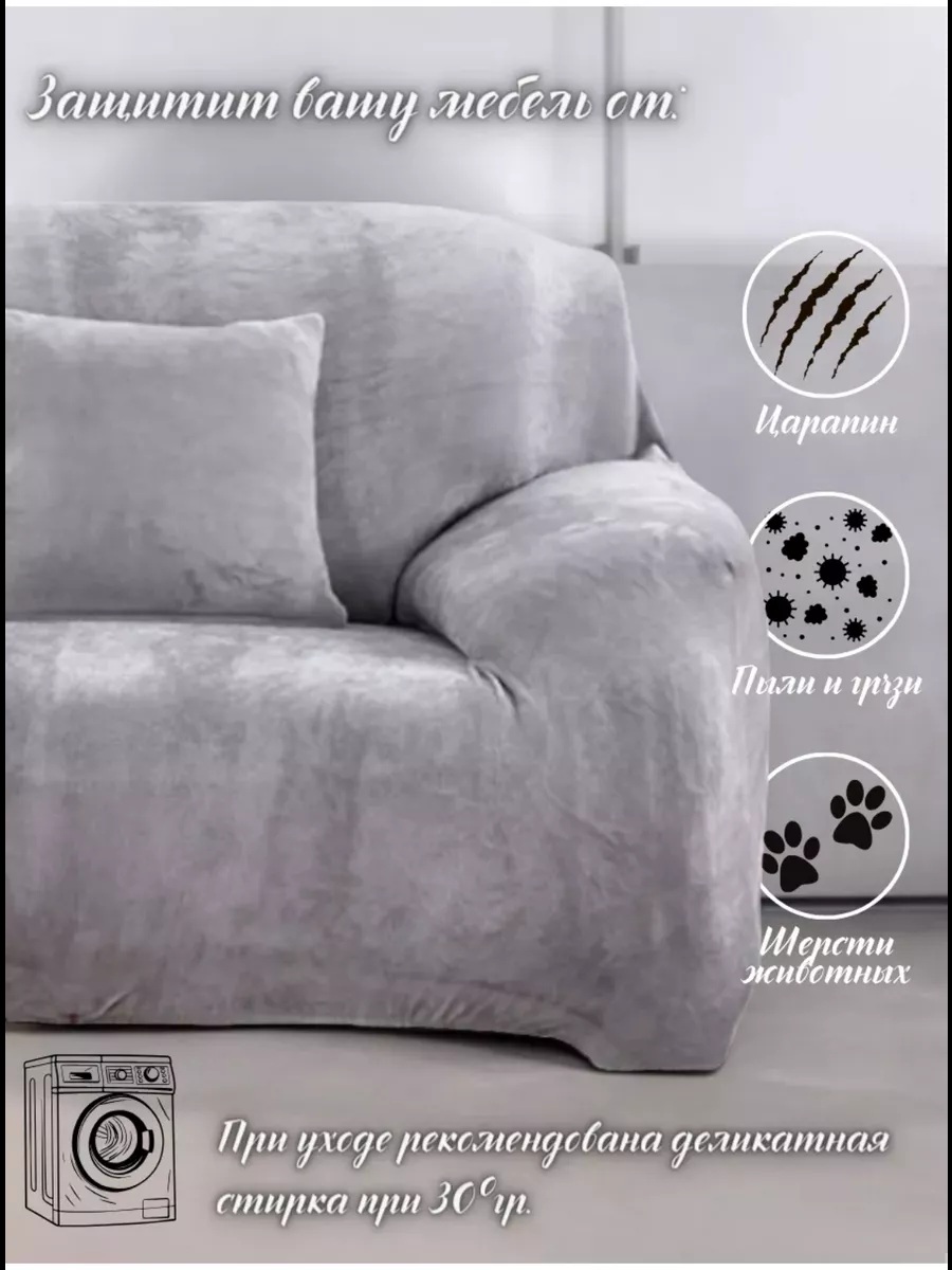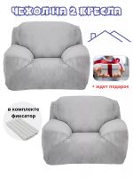 Чехлы на 2 кресла без оборки плюш (мех) светло-серый