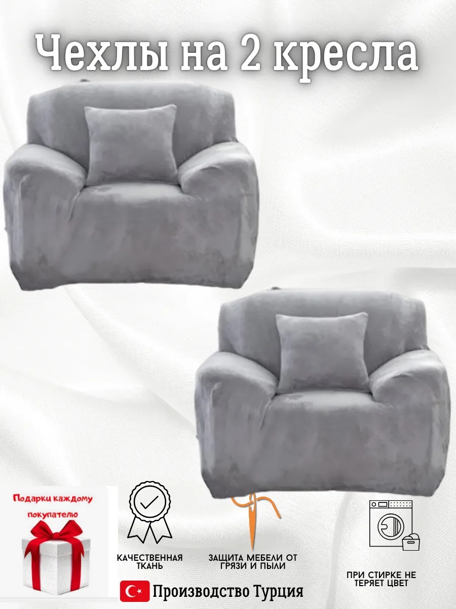 Чехлы на 2 кресла без оборки плюш (мех) темно-серый