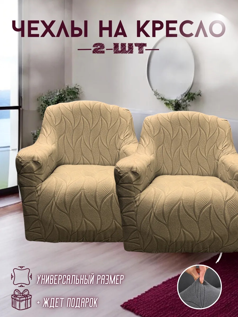 Чехлы на 2 кресла без оборки, жаккард, голубой, серо-коричневый