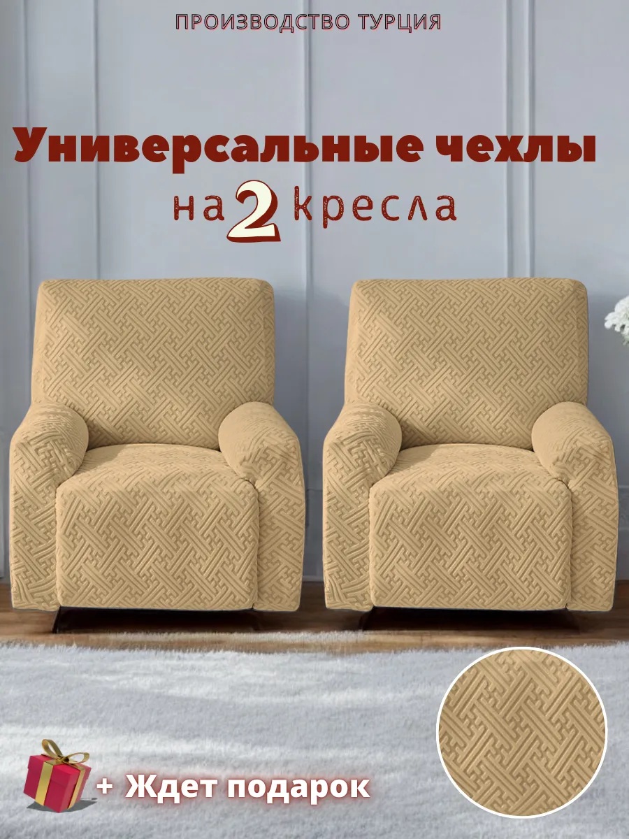 Чехлы на 2 кресла без оборки, жаккард, кофейный, кофе