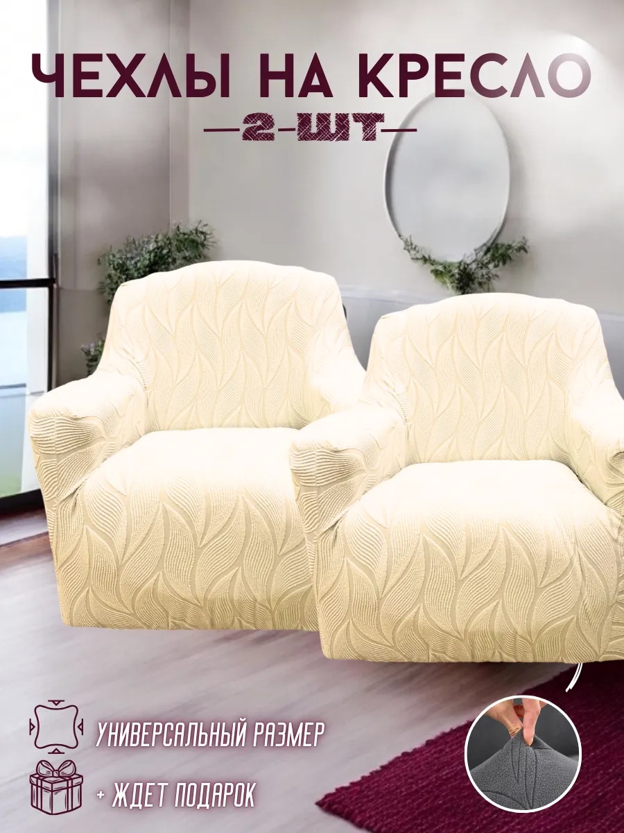 Чехлы на 2 кресла без оборки, жаккард, кремовый
