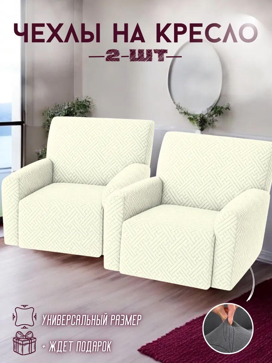 Чехлы на 2 кресла без оборки, жаккард, кремовый