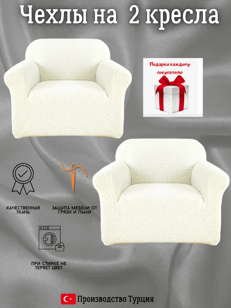 Чехлы на 2 кресла без оборки, жаккард, кремовый