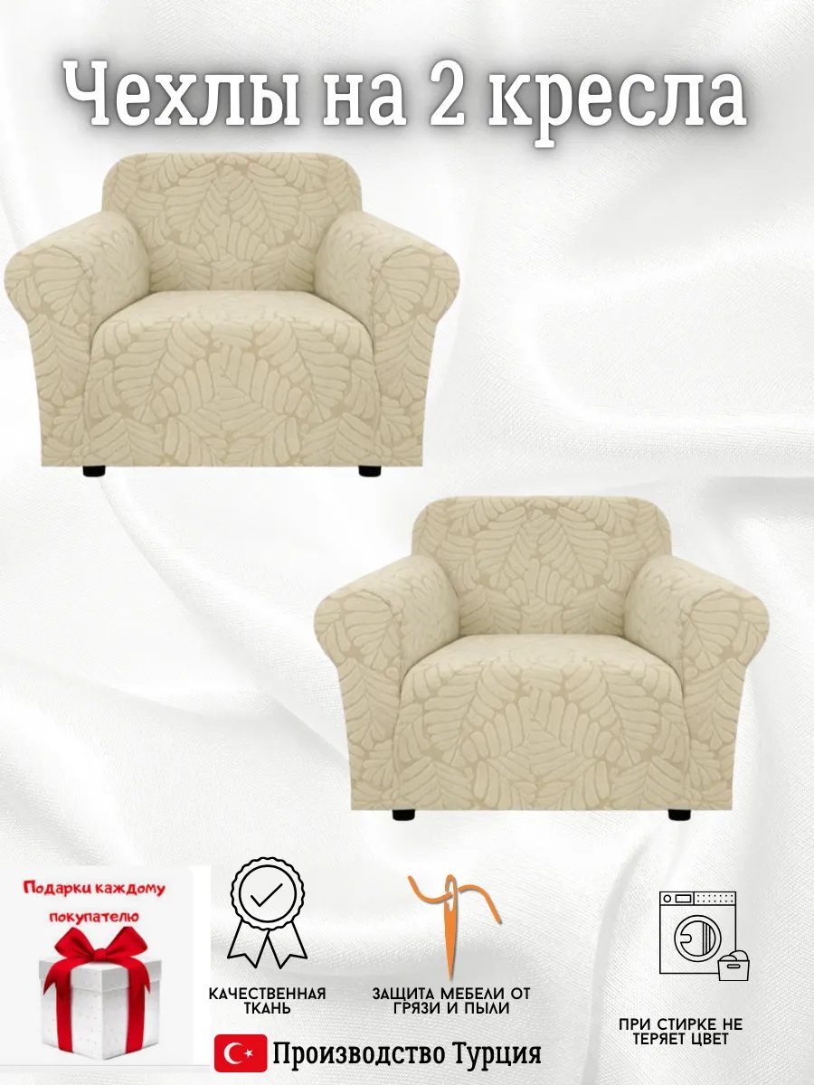 Чехлы на 2 кресла без оборки, жаккард, кремовый
