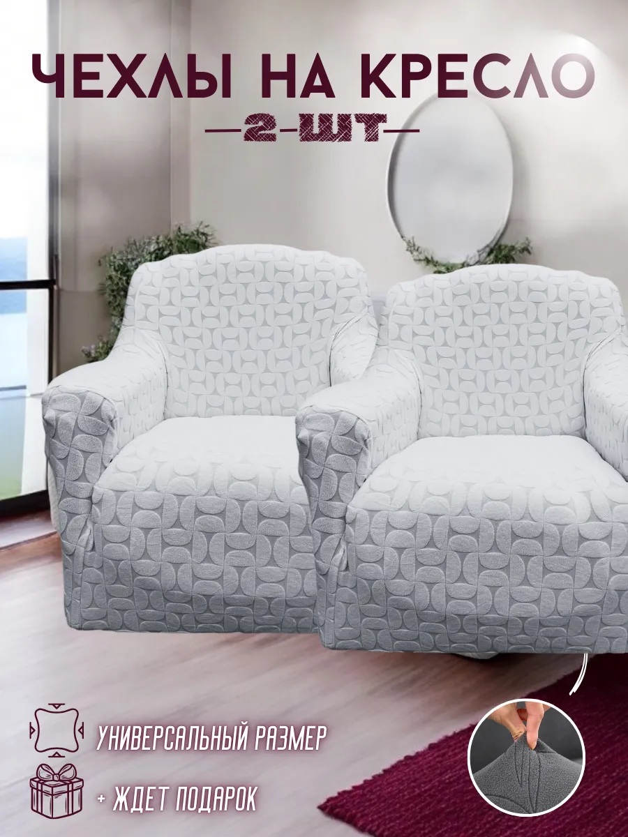 Чехлы на 2 кресла без оборки, жаккард, серый